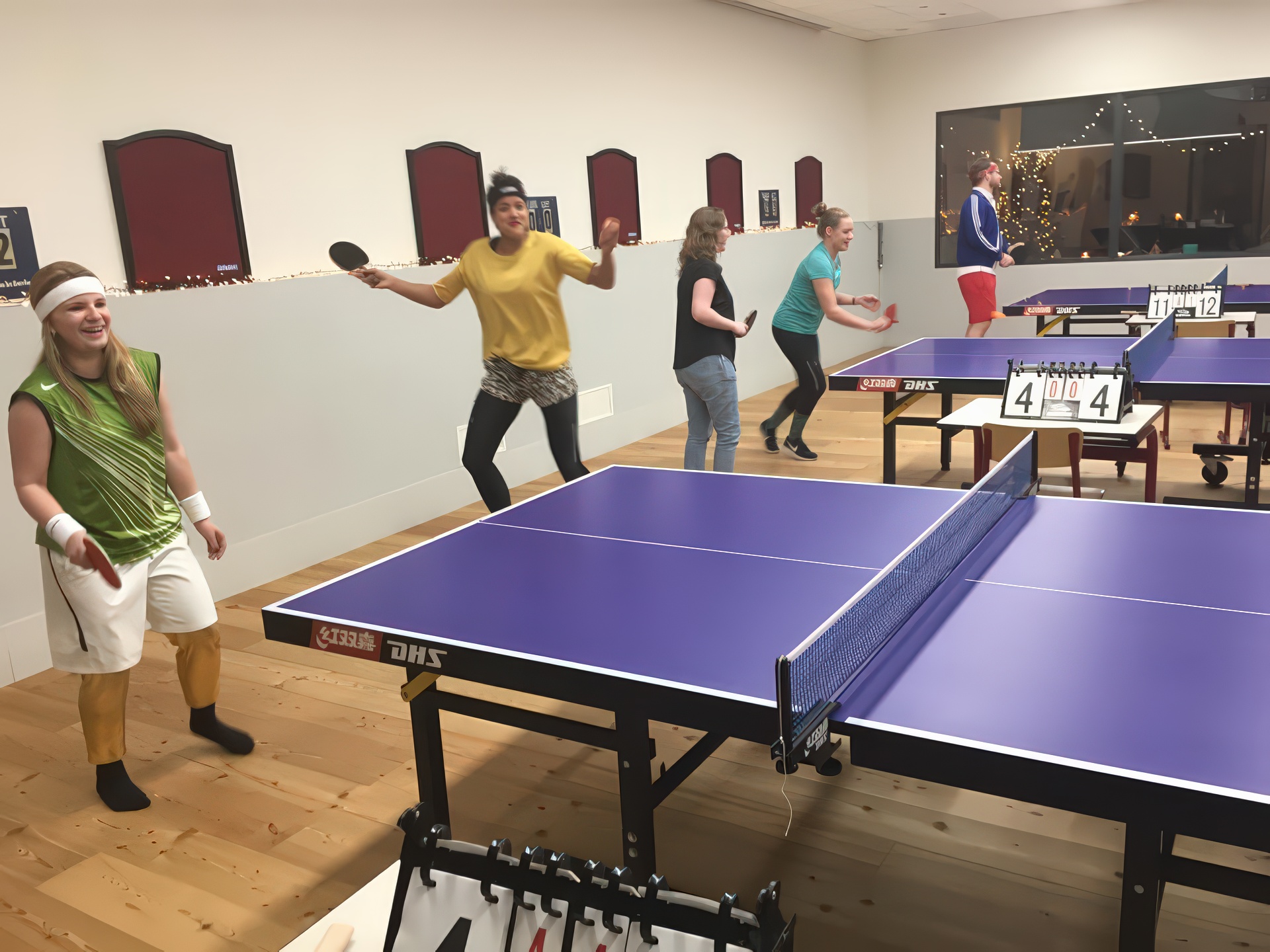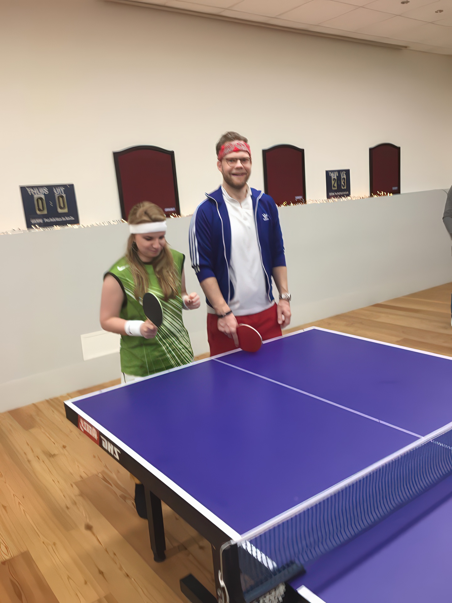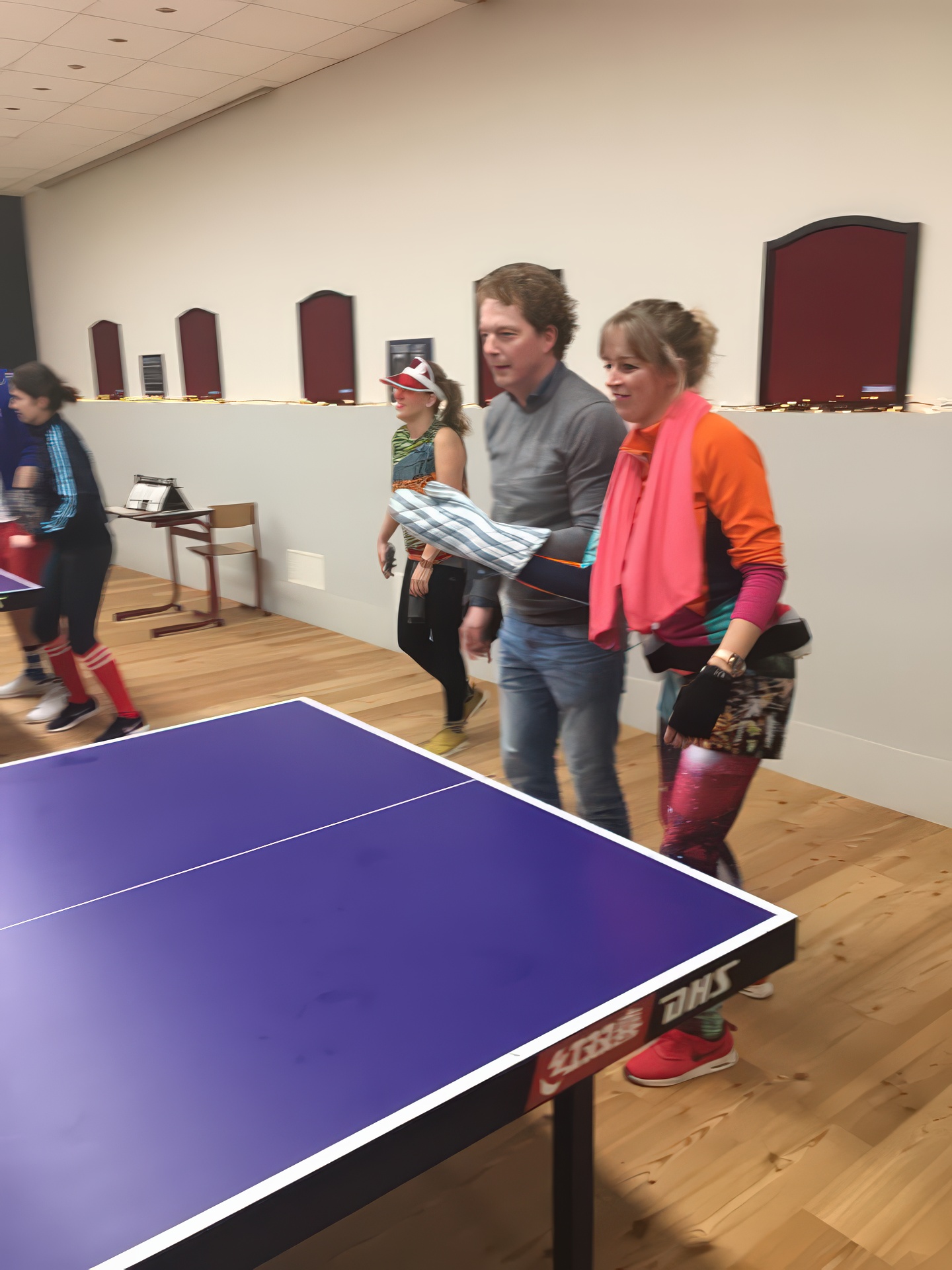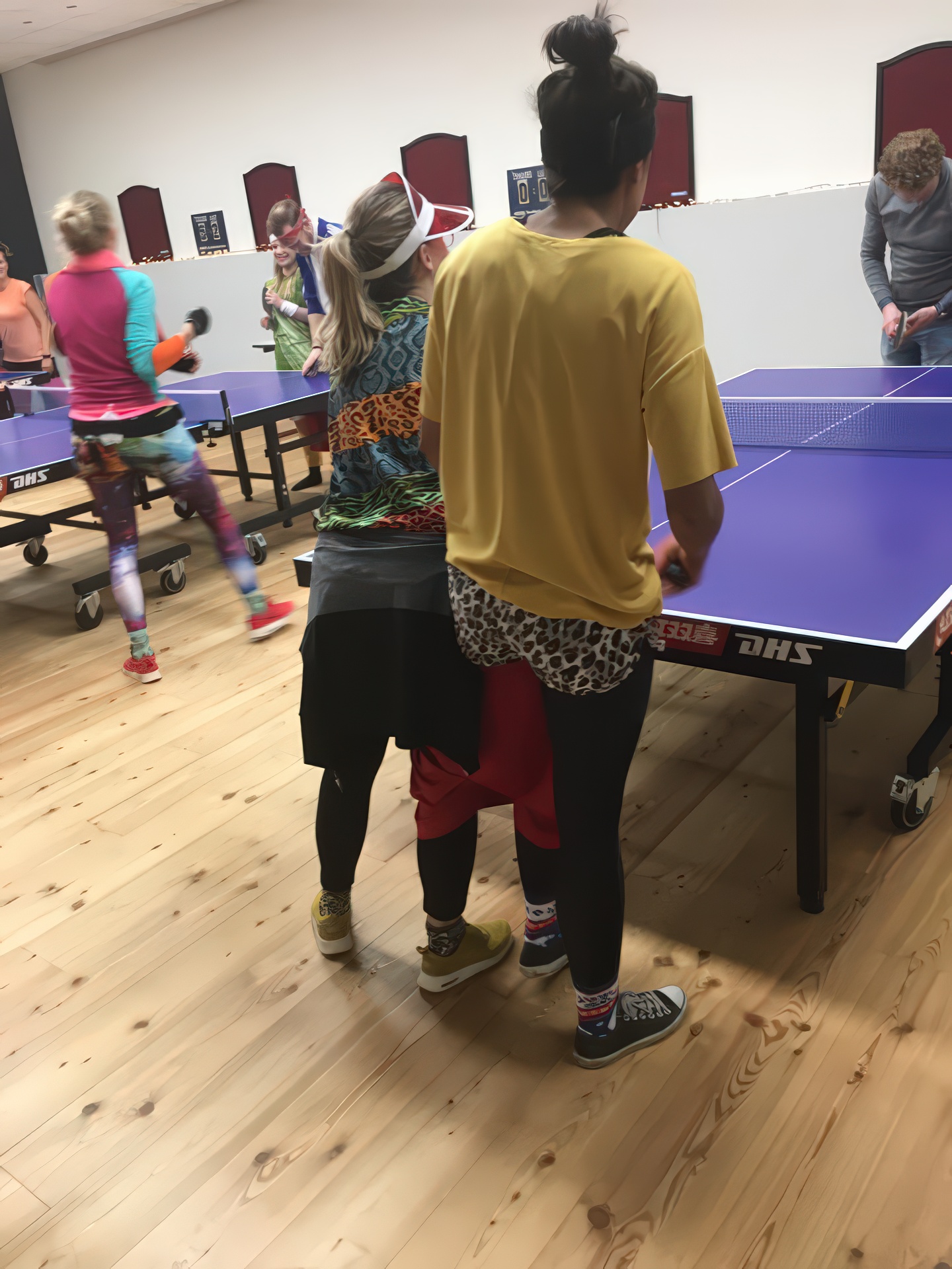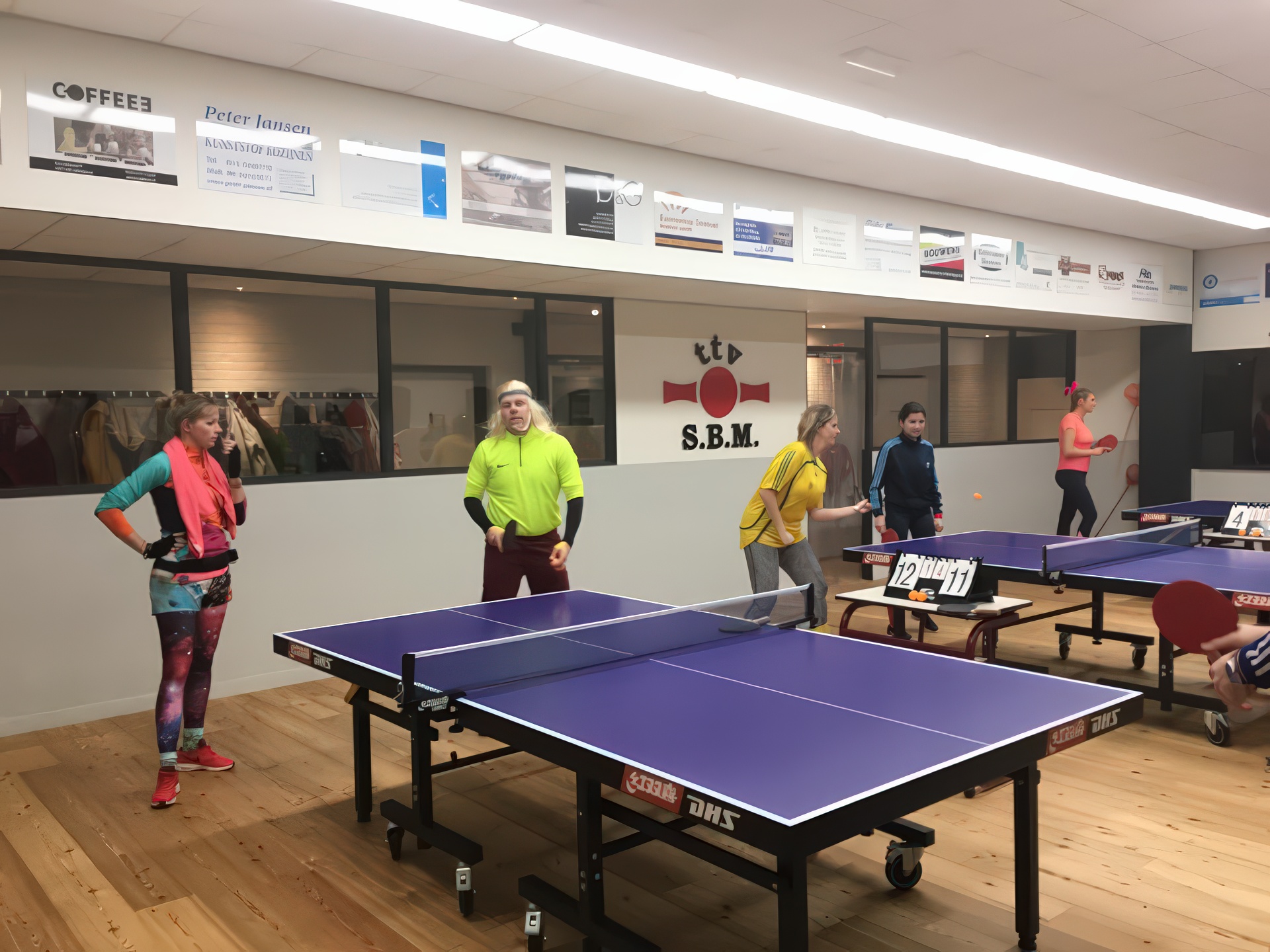 In 2018 kleurde onze speelzaal even niet rood-zwart, maar alle kleuren van de regenboog. Tijdens het inmiddels legendarische Carnavalstafeltennis werd er fanatiek gespeeld in de meest creatieve outfits. Van prinsen en piraten tot superhelden en compleet onherkenbare creaties – alles mocht, niets was te gek. Hoewel de rally’s soms nét iets minder serieus waren dan tijdens de competitie, werd er verrassend scherp gespeeld. Smashen met een cape, serveren met een steek op of een rally in volledige carnavalsoutfit: het leverde hilarische momenten én knappe punten op. Natuurlijk draaide het niet alleen om tafeltennis. Gezelligheid stond centraal. Tussen de wedstrijden door werd er gelachen, geproost en gefeest zoals alleen S.B.M. dat kan.